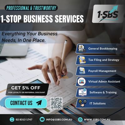 At 1-Stop Business Services (1-SBS), we make business management simple. Our mission is to provide all the support your business needs under one roof — from bookkeeping and payroll to tax, compliance, IT, and virtual admin. By combining professional expertise with modern technology, we take the stress out of day-to-day operations so you can focus on growth.